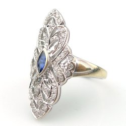 Ring i 18 karat guld med glimrande diamanter och exklusiva mörkblå safirer