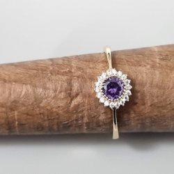 Superfin ring, med lila & vita Cobic Zirconia, Äkta guld 18K