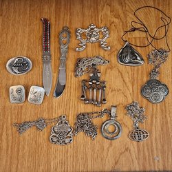 Blandade vintage smycken i tenn enligt bild