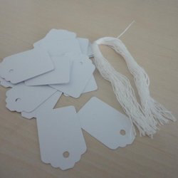 30 St Prislappar Vita med snöre, 3,5 x 2,3 cm
