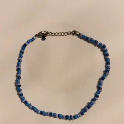 Handgjort ankelband/armband med blå pärlor - Reglerbar längd
