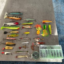 Fiskespö med olika beten och tillbehör