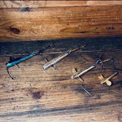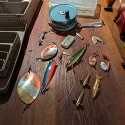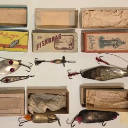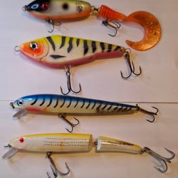 Mkt gamla fiskedrag, Devonspinnare, pirkar, mm.mm
