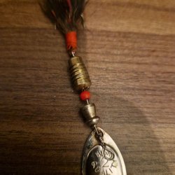 Skinnbit med fjädrar från tupp. 2