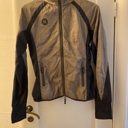 Snygg UHIP blå/limegrön ridkappa, storlek 40