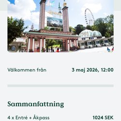 Liseberg 4 x inträde & åkpass 3Maj