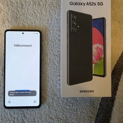Samsung Galaxy A52s 5G, 128GB, awesome black, fint skick med originalbox&fodral