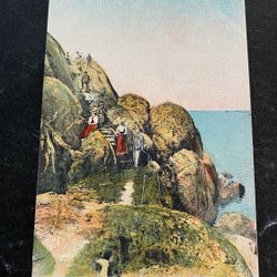 Marstrand Folkliv på Bergstigen . Handkolorerat