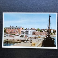 Lysekil Hamnmotiv med hotellet båt o folkliv