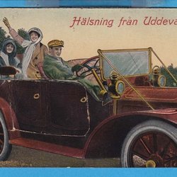 UDDEVALLA. Tecknad bil med bildband i lucka 1920