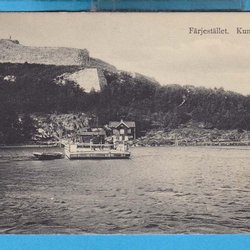 KUNGÄLV. Färjestället och färja med vagn ombord 1908