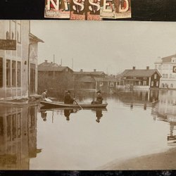 Äkta fotografivykort Översvämningen i Falun 1916 Med bageri och affärer
