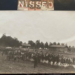 Äkta fotografivykort Folkfest med militärer stämplat Stora Tuna 1908