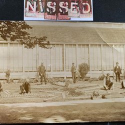 Äkta fotografivykort Göteborg . arbetare planterar