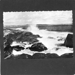 Morup VIlda vågor vid Glommens hamn Handkolorerat foto sänt 1961