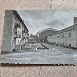Vykort Hudiksvall Badhuset och Idrottshallen