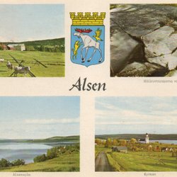Alsen. Vången Hällristningarna Alsensjön Kyrkan. Stmp Alsen 1964, t. Vällingby