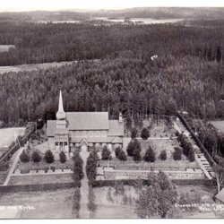 Flygfoto av Håsjö nya Kyrka.
