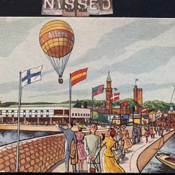 Tecknat minneskort från H55 Utställningen i Hälsingborg