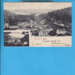ÖVERUM. 2-bildskort med bruket och kyrkan 1905 (Västervik)