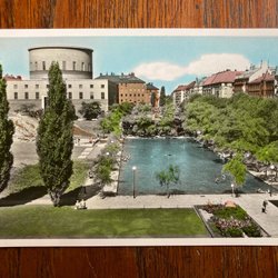 Vykort Stockholm Stadsbiblioteket och Plaskdammen