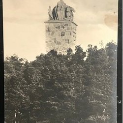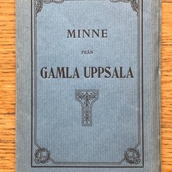 - Gammaldags vykort som avbildar Gamla Uppsala, där historiska gravhögar reser sig stolt.
