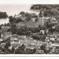 Strängnäs. Kyrkan med närliggande kvarter, flygfoto