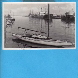 LIDKÖPING. Hamninloppet, segelbåt, lastfartyget Kisa(?), textkorrektur ca 1930-t