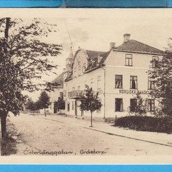 GRÄSTORP. Österlånggatan med bank ca 1925