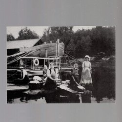 Köping Nedre ån Många småbåtar och kåkar till höger trol 1920-tal KV 8