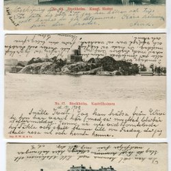 Över femtio vykort med vanliga turistmål i Sverige