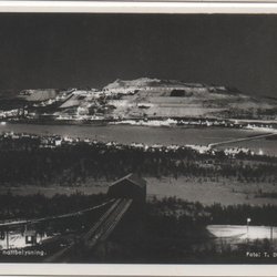 Vykort Kirunavaara i nattbelysning, pressbyråkort nr 10214.
