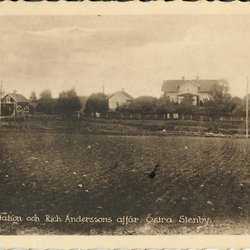 Vykort Järnvägsstation och Rich. Anderssons affär, Östra Stenby. (Norrköping)