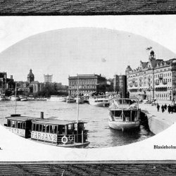 Träsnitt ”Stockholm från södra Blasieholmshamnen” ur bok från 1901