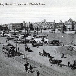 Stockholmsbilder Gustav III staty och Blasieholmen