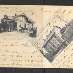 Vykort Önnestad 2 bild Johnssons Handelsbod + Folkhögskolan beg 1903