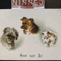 kartongkort med 3 st hundar i relief . 1890-talet