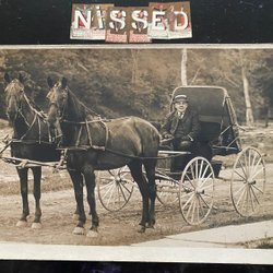 Äkta fotografivykort 2 hästar och vacker vagn