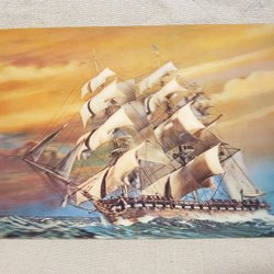 Gammalt oskrivet 3D vykort med segelfartyg märkt Toppan