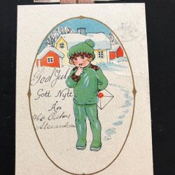 Litet vykort Pojke med brev Osignerat