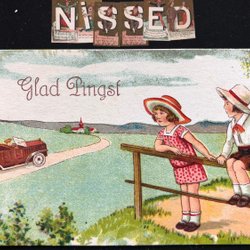 Litet vykort Pojkar sätter upp havrenek Osignerat