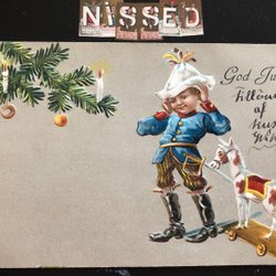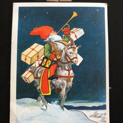 Litet vykort Viktor Rydbergs Tomten Tomte vandrar på loftet