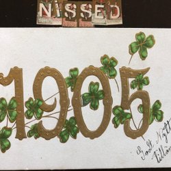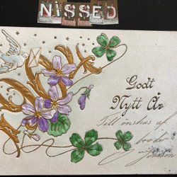 Årtalskort från 1905 fyrklöver l Guld och Relief