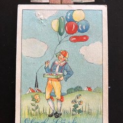 Litet vykort Osignerat pojke med ballonger