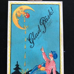 Litet vykort Barn flyger på påskägg Osignerat