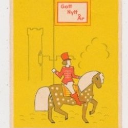 Oskrivet nyårskort Småkort Härold till häst bär nyårsflaggstång KV 9 10