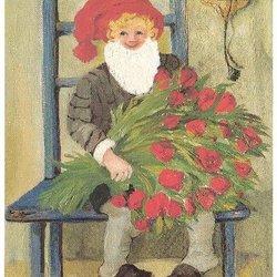 Jenny Nyström - julkort - Tomte och liten flicka