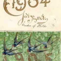 2 vackra årtalskort 1904 med guldtext och 1905 med svalor