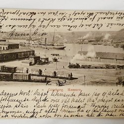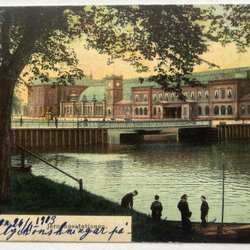 1906 - Vykort - Nationalmuseum med ångbåt. Järnväg stemplad PKXP 17 B