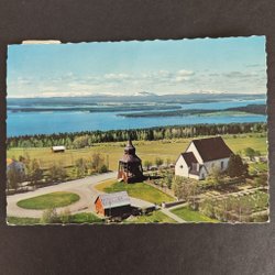 Vykort Frösö kyrka med Storsjön och Oviksfjällen